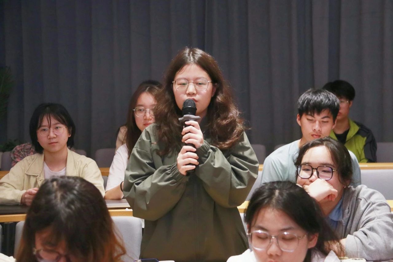 提问互动环节,师生就视频制作风格、拍摄创作流程、剧本创作、寻找采访对象等问题进行积极交流。海金星在回答中提到“会看片子很重要”,看片子需要注意三个层面:片子好、好在哪、怎么做到好。