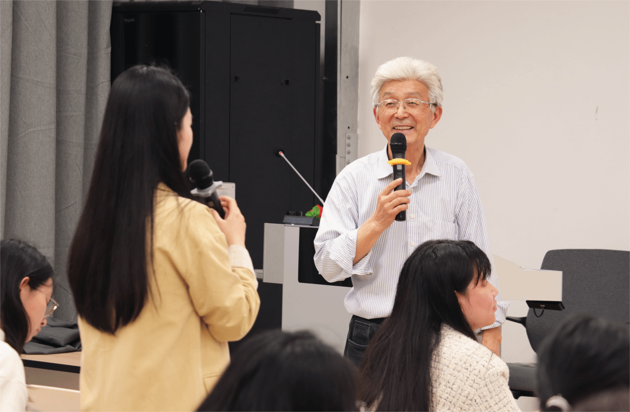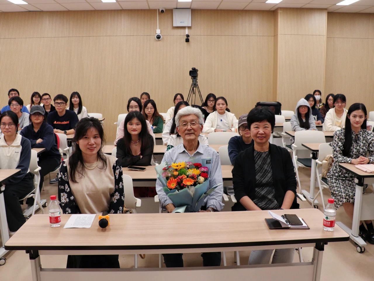 讲座由我院副院长丁智擘副教授主持,学生代表胡岳诗童上台赠花并表示欢迎。学院党委书记余珊燕出席讲座。