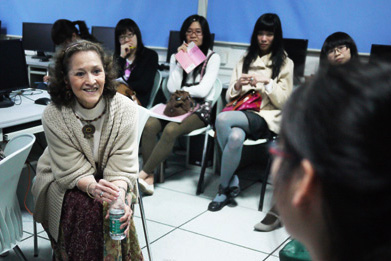 “有活力,有激情,交流时会主动靠近你。”09新闻的黄清在上完Sherry Ricchiardi的课后如此评价这位新老师。这个春季学期,Sherry作为特聘教授加盟我院,将与樊林君老师一起执教《中级英语采访与写作》这门课程,并受学院邀请,根据她多年在美国著名新闻学院执教的丰富经验,对我院课程体系作出评估,并对下一步课程调整和教学改革作咨询。