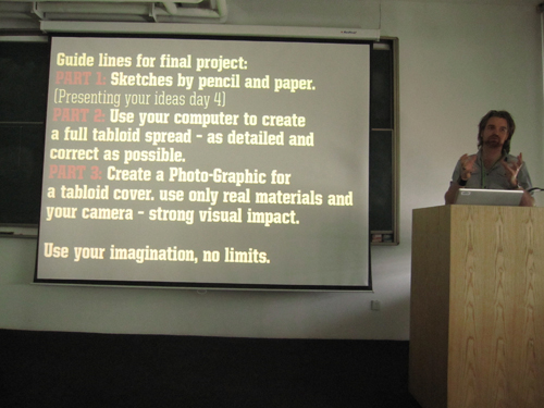 瑞典《 特雷勒堡新闻集锦报》总编辑理查德·弗兰克先生正在上课。