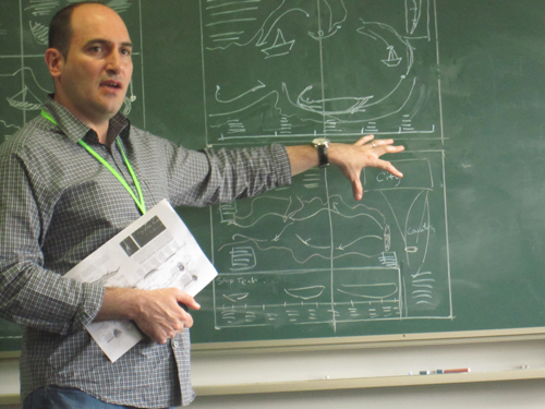 美国《国家地理》杂志的艺术总监胡安·韦拉斯科先生在点评学员的图表草稿。