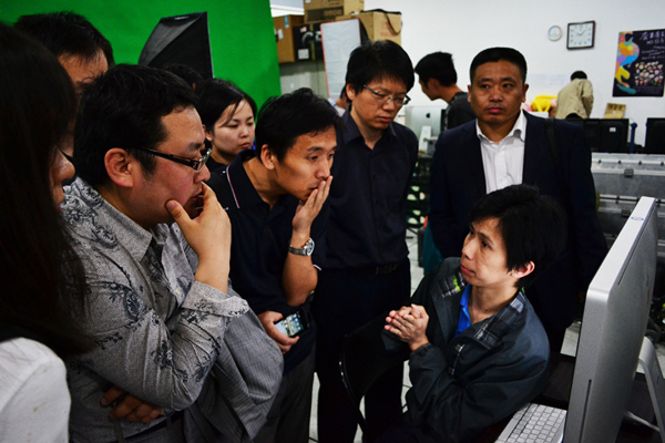 融合媒体实验室的关义俊、林彦两位老师详细地向首经贸师生团介绍了我院的融合媒体特色教学项目,并展示了我院的教学平台“数字学园”以及部分学生作品。首经贸师生在参观后纷纷表示今后要“多注重新闻实践这一块”。