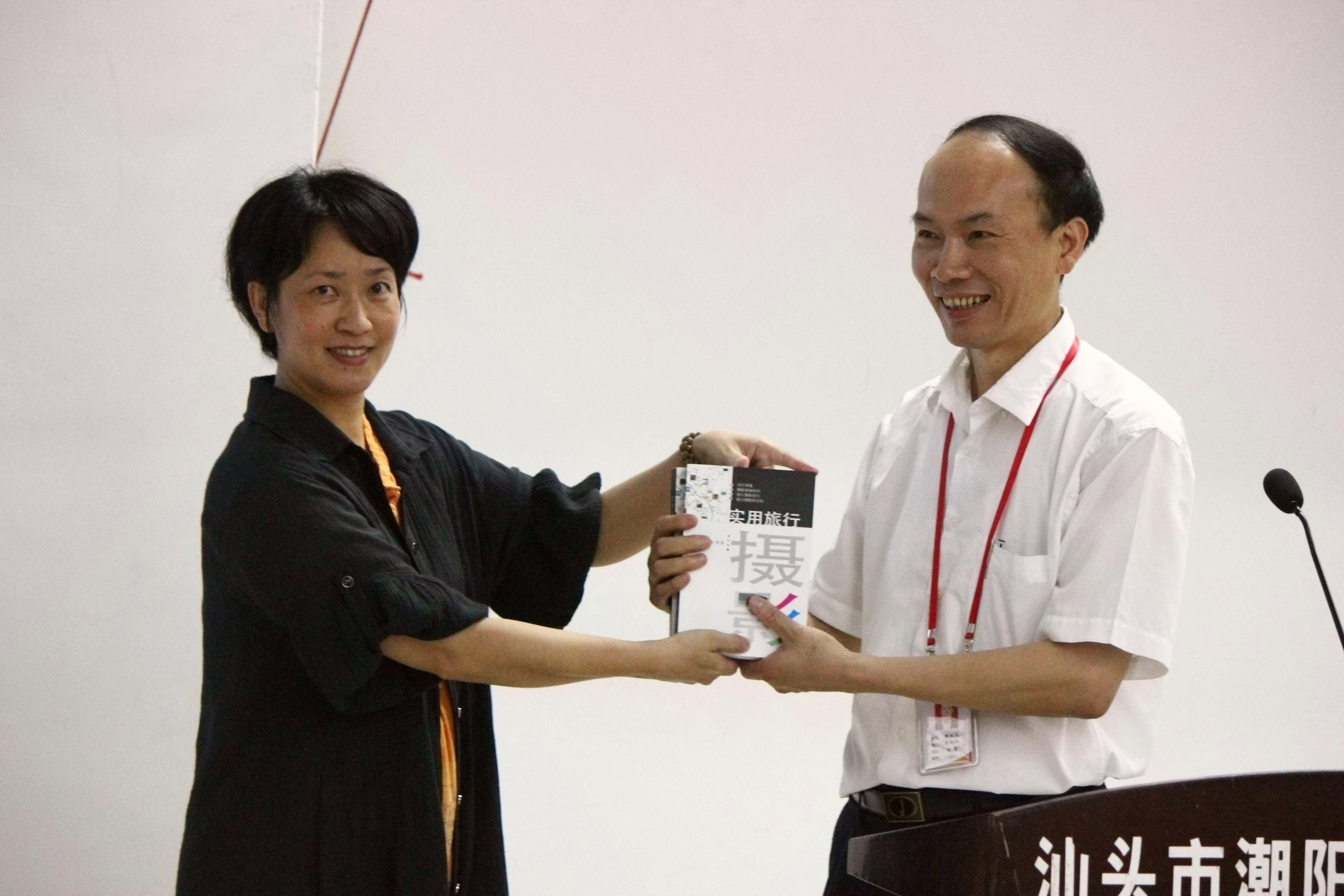 讲座结束后,谢琳老师赠送了两本她的新著作——《实用旅行摄影》给潮阳一中明光学校,并代表我院赠送200份汕大最新一期校报给在场学生。