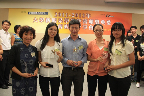 在13个奖项中,我院共获得2项冠军,分别是杨凤仙、黄婷撰写的《走近星星的孩子关注汕头自闭症儿童》获中文组最佳新闻写作冠军,奖金4000港元;新加坡籍留学生王锦胜(Jason)凭缅甸采访报道Never Too Poor to be Rich获英文组标题冠军,奖金4000港元;另外,李玲、王思思报道的《厦深高铁施工停滞调查》获中文组最佳新闻报道优异奖,奖金2000港元。