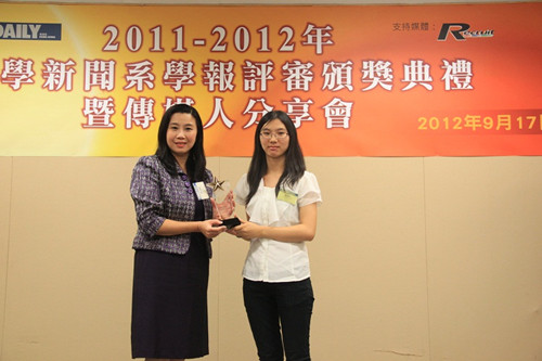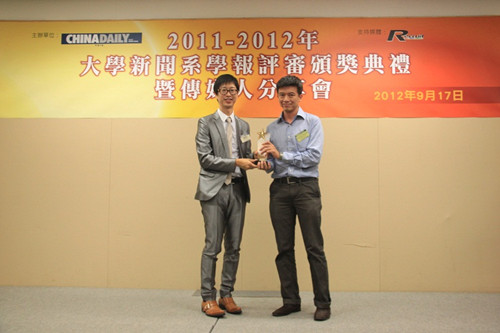 此次学报评审共设中英文共13个奖项,包括最佳新闻报道、最佳新闻写作、最佳新闻特写、最佳校园编辑、最佳校园记者、最佳标题、最佳版面设计、最佳摄影图片、最佳学报设计。香港、澳门、中国内地共8家高校参加评比,包括香港中文大学、城市大学、树仁大学、香港珠海书院、澳门大学、中国人民大学、汕头大学、深圳大学。这次比赛的最大赢家是香港中文大学,共获得六个冠军。