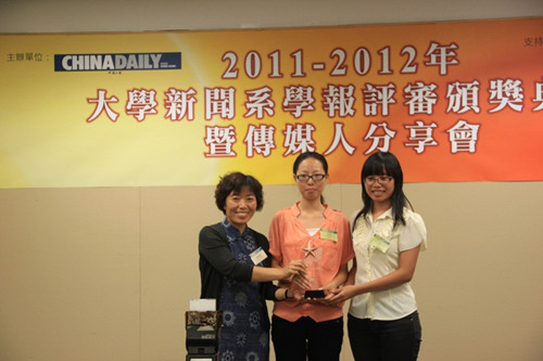 由中国日报(China Daily)香港版举办的“2011-12年大学新闻系学报评审颁奖典礼暨传媒人分享会9月17日在香港浸会大学举行。汕头大学长江新闻与传播学院在这次评比中获得三个奖项,分别是中文组最佳新闻写作大奖,英文组标题大奖,中文组最佳新闻报道优异奖,是中国大陆获奖最多的院校。