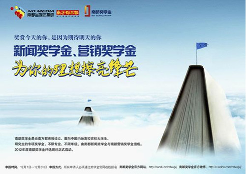 2012年度第八届南都新闻奖学金于10月24日起正式启动!有志于或已经致力于传媒事业的高校在读学生均可申报,不限学校、专业与年级。本次奖金非常丰厚,新闻奖学金总额度高达17万元。获得者同时获得主办单位颁发的获奖证书。欢迎学生踊跃参与!