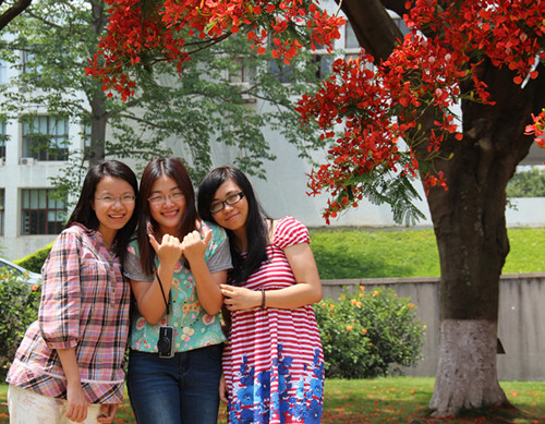 雷媛深知学以致用的重要性。四年的寒暑假期,她在不同岗位体验不同的工作,积累不同的经验。大一暑假在上海《新闻晨报》实习五周,她发表了16篇稿件,参加了多个涉及产品质量安全的大型报道。大二暑假,她作为招生志愿者,将汕大宣传册和调查问卷带回中学母校,宣传汕大。活动结束后,她完成了一份详尽的反馈报告,向学校招生工作提出建议。2012年的寒假,她在合肥新东方国外部担任托福魔鬼训练营的助教,辅导班上20位同龄人的托福应考。大三暑假,她和同学一起在泰国沙缴府越他那那空县的Watputthisan School做志愿者,教学校的幼儿园小朋友、小学生和初中生学习中文和英文。她说,虽然贡献不大,但离开时听到学生说他要好好学习中文,以后来中国找我,觉得很开心。通过志愿者活动,雷媛收获了比所付出更多的感动。