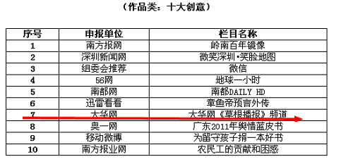 该奖项将于2013年1月13日由广东省网络文化协会颁发,旨在评选“重视内容原创性和创意性的网络作品、活动及创意策划”。一同获得十大创意奖的新媒体有:南方报网的“岭南百年镜像”、深圳新闻网的“微笑深圳•笑脸地图”、组委会推荐的“微信”等。