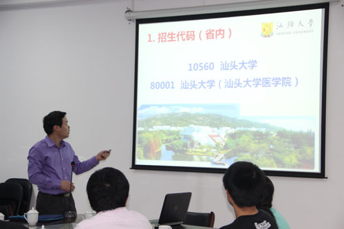 汕头大学招生办主任曾锐、新闻学院代院长范东升教授、新闻学院党总支副书记杜式敏等汕大老师和学生代表也参加了此次恳谈会,曾锐主任向汕头一中的老师介绍汕大招生工作的情况。