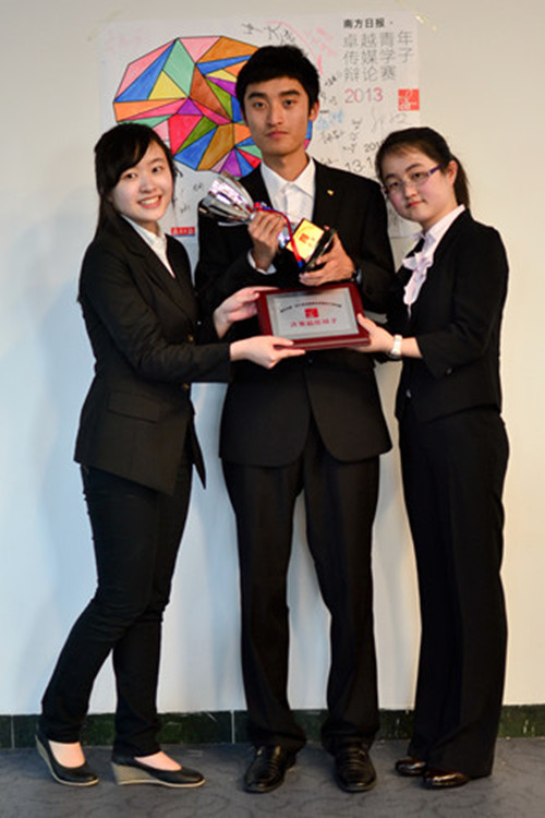 决赛中,代表队和南京大学就“微博的出现扩大/缩小了公共话语权的差异”进行了激烈地探讨,南京大学三位辩手学理基础牢固,坚持内容为王;代表队三位同学则另辟蹊径,认为在新的媒体环境中,说话者的个人影响力和表达方式更为重要。最终比分为3:4,代表队以一票之差输给南京大学,屈居亚军。廖彦霖同学再次荣获决赛最佳辩手,辩风和口才得到评委和观众的一致称赞。