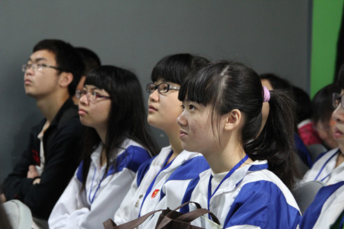 揭阳二中的同学们认真听着分享会所介绍的内容 (张锦煌 摄)