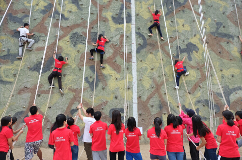 教官最后的总结发言补充道:“还有一点你们没有说,那就是下面保护你的人给了你安全感,要是没有他们抓紧绳子,你在上面还能安心地爬吗?所以要感谢你的同学!”