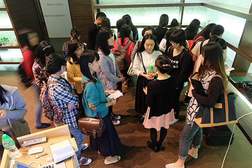 吴冠曼随行带了二十多本书,在演讲结束后供学生触摸翻阅。她说,要了解图书设计,不能光靠纸上谈兵,要亲手触摸和感受。