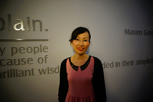 吴冠曼在汕头大学图书馆报告厅。(张欣/摄)