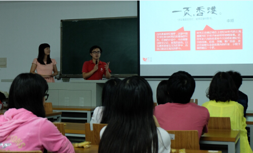 分享会上,采访团同学向大家介绍了香港书展采访从选拔、筹备到书展采访的整个过程。11级编辑出版专业的曾玉儿同学作为书展报道团的统筹组长,向同学们分享了她从不知所措到后来得心应手的书展采访体验。统筹组负责给报道团成员分派工作、建设专题网站、联络媒体发稿、运营官方微博等,需要认真细心和高度负责,书展采访让大家得到锻炼。