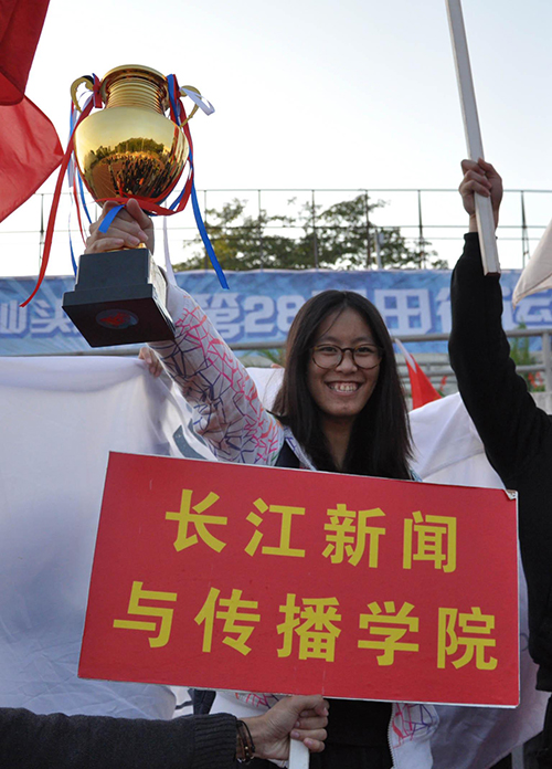(文/ 卢晓君 刘紫瑜)2014年校运会新闻学院较去年有进步,总成绩获得团体总分第八名,获得奖杯。虽然成绩不算突出,但女多男少的新闻学院破除了校运会“垫底”的魔咒,让同学们兴奋不已,争先拿着奖杯轮流拍照。