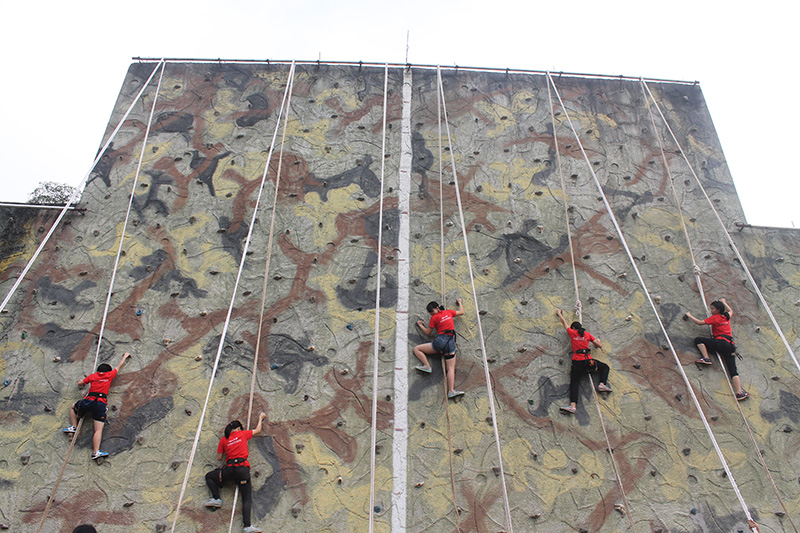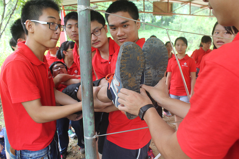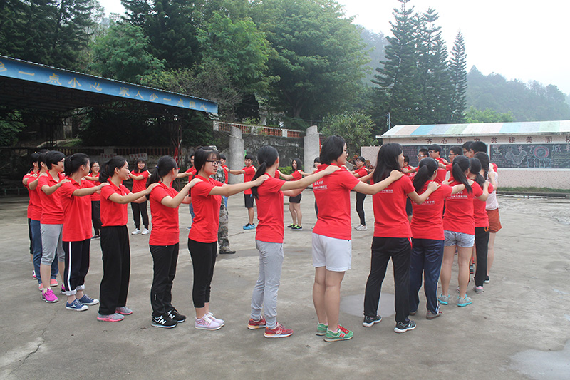 一天时间里,四个新生班在四名教官的带领下,围成圆圈,写班旗、想口号、想班歌,充满自信地高呼自己的班级是最优秀的团队。在不同的场地,同学们认真思考,积极讨论,大胆实践,互动分享,分别完成了孤岛求助、盲人过桥、攀岩、穿越电网等游戏,呐喊声声,在齐心协力的拓展活动中,新生们间的陌生感逐步减少,自信增强,团队的凝聚力得到了提高。