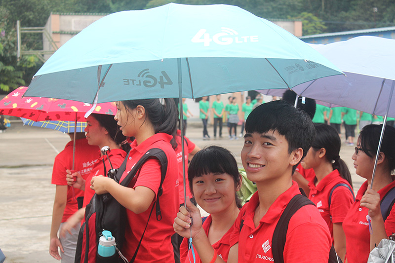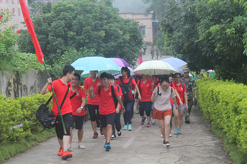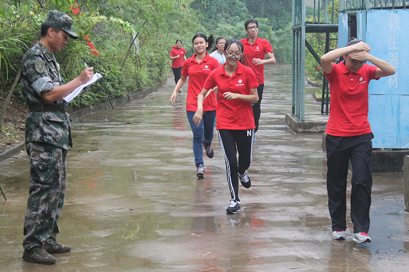 活动过程中有一阵下起了小雨,新生们没有抱怨,反而全身心投入到拓展中。已完成的同学满头汗水,返回来鼓励后面的同学,体现了互相帮助的友好情谊。