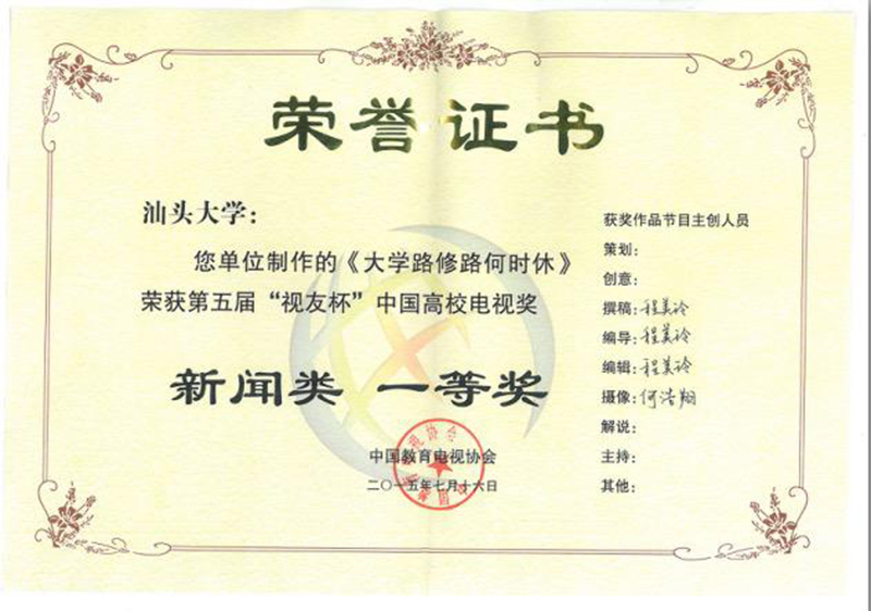 何浩翔和程美玲凭着《大学路修路何时休》获得“视友杯”中国高校电视奖新闻类一等奖。