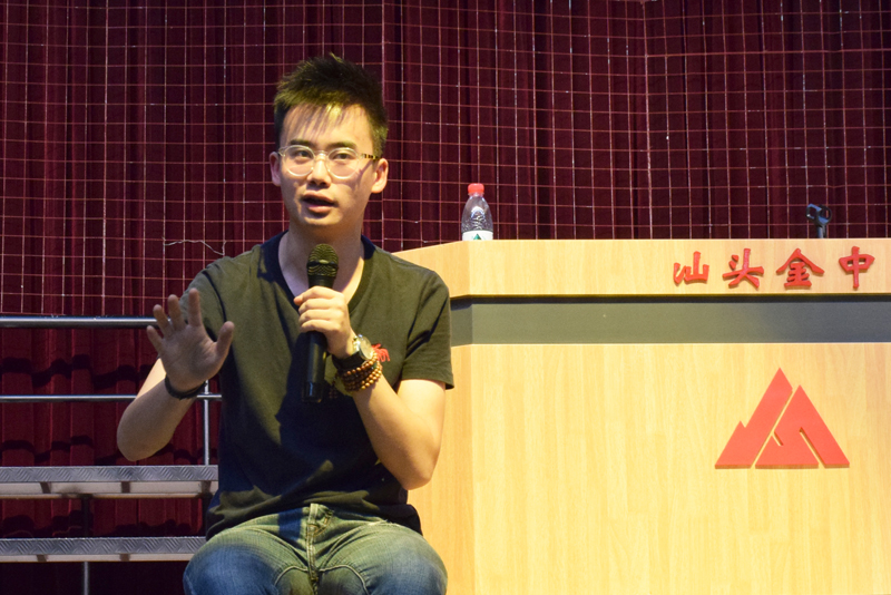 2015年11月16日,熊浩在汕头市金山中学的大礼堂开讲“学长问答——张望,与看见”,与1000多名金山学子分享了他的人生心得与见解。
