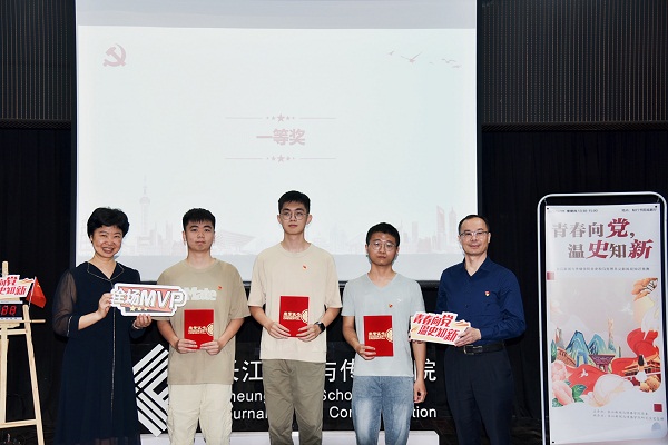 4月28日下午,由汕头大学长江新闻与传播学院党委主办、长江新闻与传播学院研究生党支部承办的“青春向党,温史知新——党史和马克思主义新闻观知识竞赛”活动在知行书院戏剧厅成功举办。校党委常委、组织部部长苏文记,学院党委书记余珊燕、党委副书记洪蒙典、副院长丁智擘出席活动。