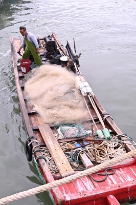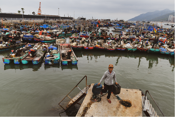 南澳后宅钱江码头,是师生们拍摄的第一站。在钱江码头,一艘艘春捕归来的渔船整齐地靠在岸边。师生们到达的时候,船上的渔民们早已在近海完成作业并返航,渔民们正忙着卸载出海捕捞回来的收获。一筐筐海鲜被分拣、运输完成后,渔民们开始整理渔网,收拾渔具,修理渔船,等待着明天凌晨再次出发。