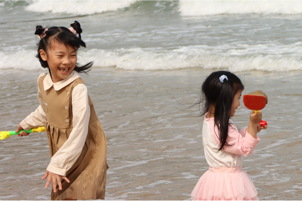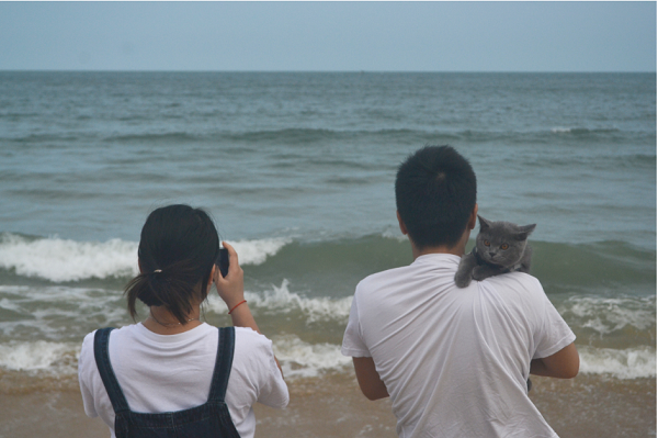 看着一望无际的海,同学们兴高采烈地踩在海滩,用快门记录下青澳湾多姿多样的人、物、景。