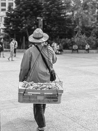 21级广告专业的张灵羚在整理照片时体悟到“照片里记录的不仅仅是和我们擦肩而过的无关的人,而是每一个你我。”在朋友圈,她分享了自己最有感触的几张照片,“负载生活的肩膀与苦苦维持的平衡/引线两头的是岸上的家庭和岸边的谋生……”,她喜欢这些充满故事感的每一张照片。
