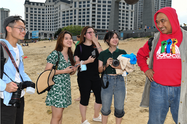 下午三时左右,师生抵达最后一个拍摄点——青澳湾北回归线广场。青澳湾被海内外游客誉为“东方夏威夷”,是南澳岛最负盛名的网红打卡地。