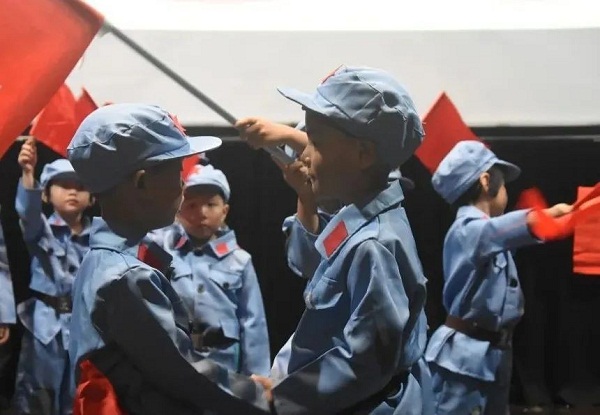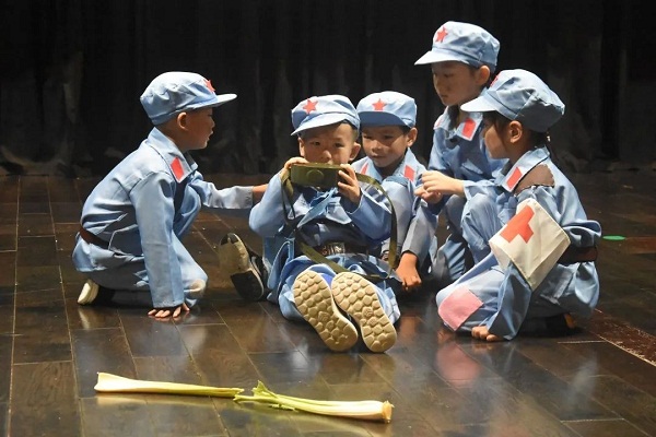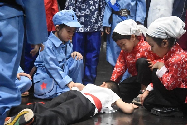 值得一提的是,新闻学院的同学们在前期编写话剧剧本时,听取了幼儿园老师们的建议,注重结合了幼儿这一年龄阶段的性格特征和其热爱模仿的特征,使剧本易于小朋友理解,因人施教;在与幼儿园小朋友结对编排的过程中,更好地了解党史和红色教育,耳濡目染之下,增强对党建文化的认同感。