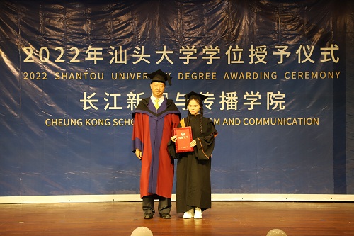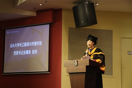 汕头大学党委副书记周镇松,汕头大学宣传统战部部长杜式敏,长江新闻与传播学院党委书记余珊燕、党委副书记洪蒙典,副院长毛良斌、丁智擘,学院教师与应届毕业生一同出席了本次学位授予仪式,仪式由洪蒙典主持。