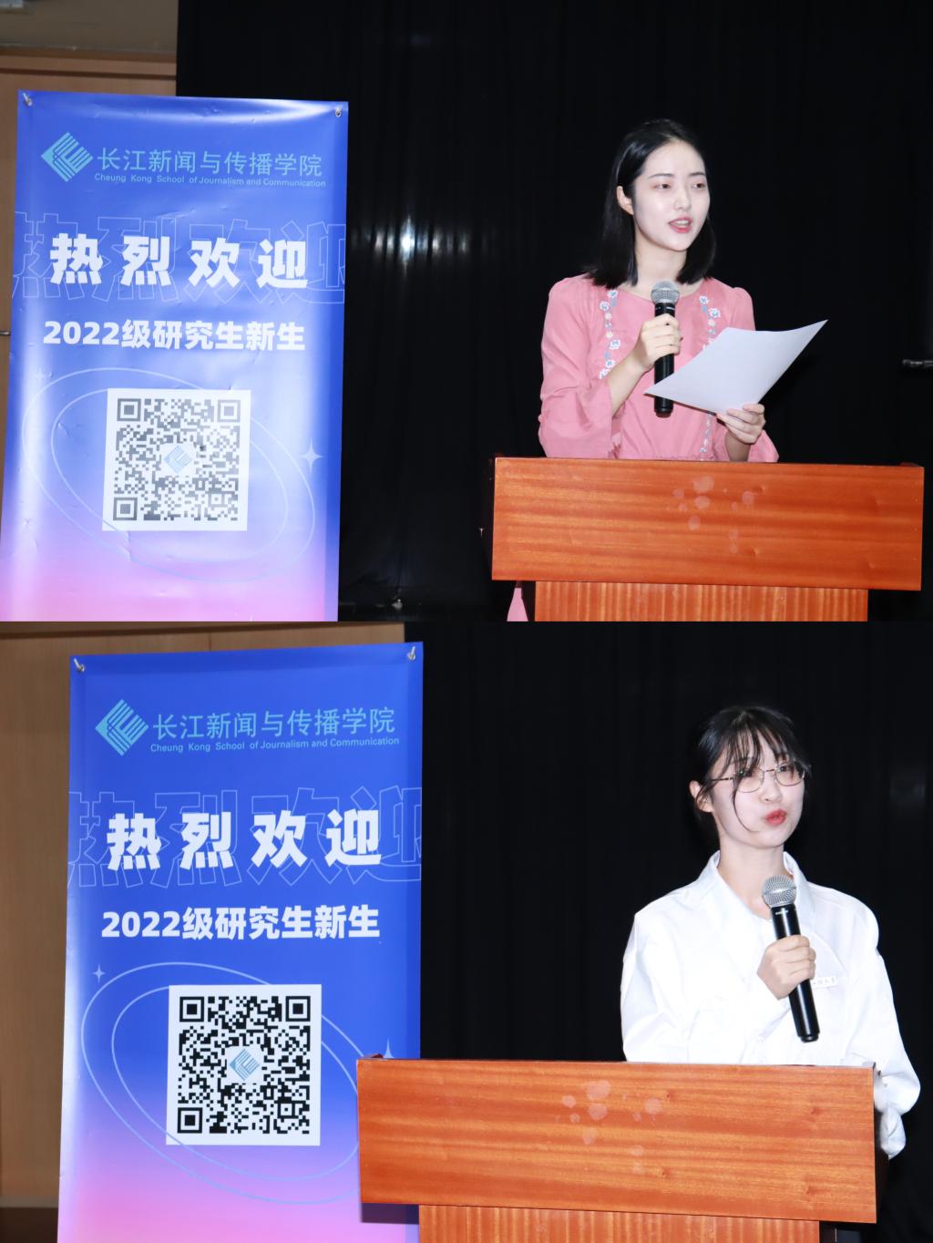 学院教师代表、副教授徐少林在发言中给新生们安利了汕头的美食和景点,鼓励同学们在学习之余不忘体验生活。在读研究生代表、2021级新闻与传播专业巢子怡分享了自己读研以来的学习和实践经历,鼓励师弟师妹们要拥有更强的方向感和驱动力。新生代表、2022级新闻与传播专业全月蓉表示将勇于面对新的机遇和挑战,挖掘潜能,实现梦想。