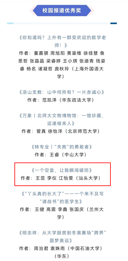 得知作品获奖,李仪表示她们的努力得到了肯定,“同时这也是一个向更多人展示月经互助盒存在的机会。”江怡雯也表示获奖是对这篇文章的认可,这将给予她们更多的信心和动力。
