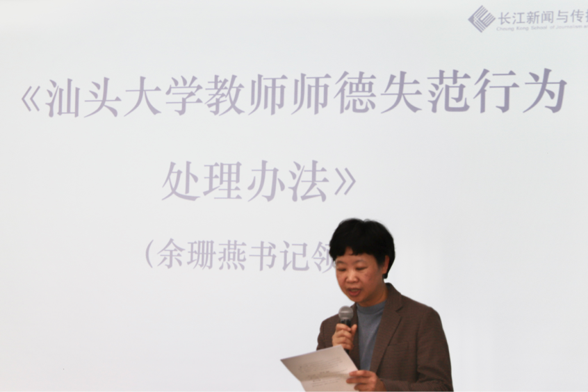 会上,学院党委书记余珊燕领学《汕头大学教师师德失范行为处理办法》,希望全体教师认真落实立德树人根本任务,自觉恪守师德规范,做“四有”好老师。