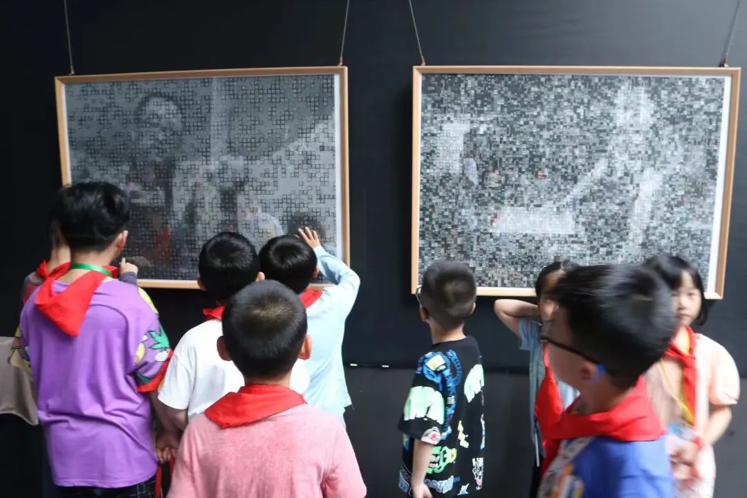“这顶胡萝卜帽好有意思!”“喜欢那幅有很多小房子的画!”“这是硝酸,老师说不可以乱碰。”稚嫩而纯真的声音从知行书院二楼空地传来,闻声而望,《蚀与客》艺术展迎来了一批小客人。