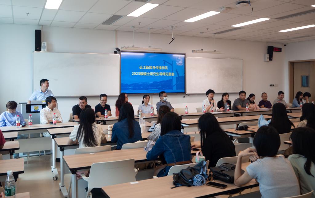 导师,是研究生学术生涯的启迪者与成长道路上的引路人。为增进研究生新生对学院学科体系、导师及研究方向的认识,顺利完成师生互选,10月11日下午,长江新闻与传播学院2023级研究生见面会在东海岸校区E205室举行。学院党委书记余珊燕,副院长毛良斌、丁智擘和学院硕士生导师们出席见面会,活动由毛良斌主持。