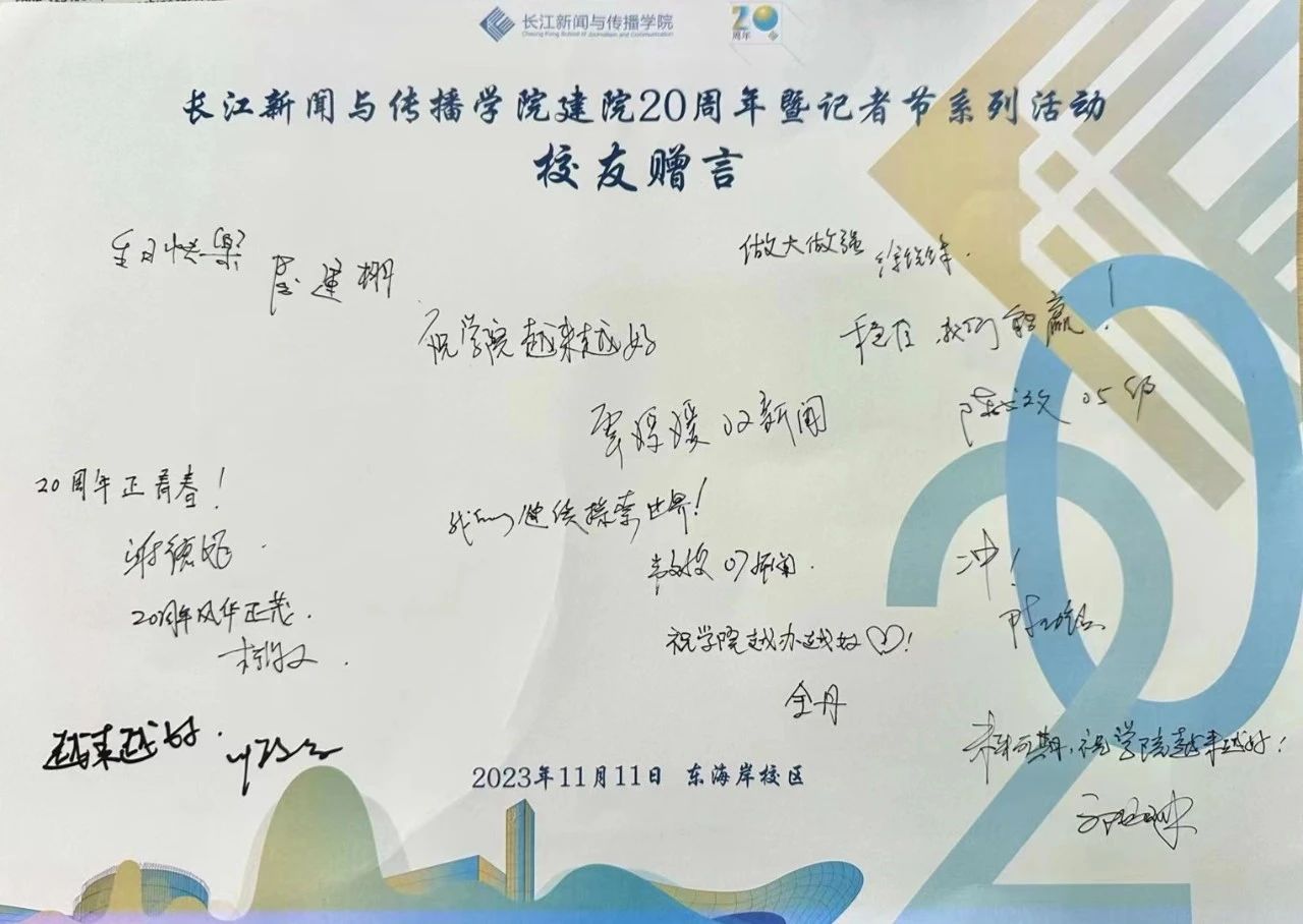 启动仪式上,师生共同观看建院20周年纪念视频《留廿》,回顾学院二十年发展历程。新闻学院原院长范东升教授专门发来亲笔题词,寄望新闻学子“薪火永续,奋楫笃行”。