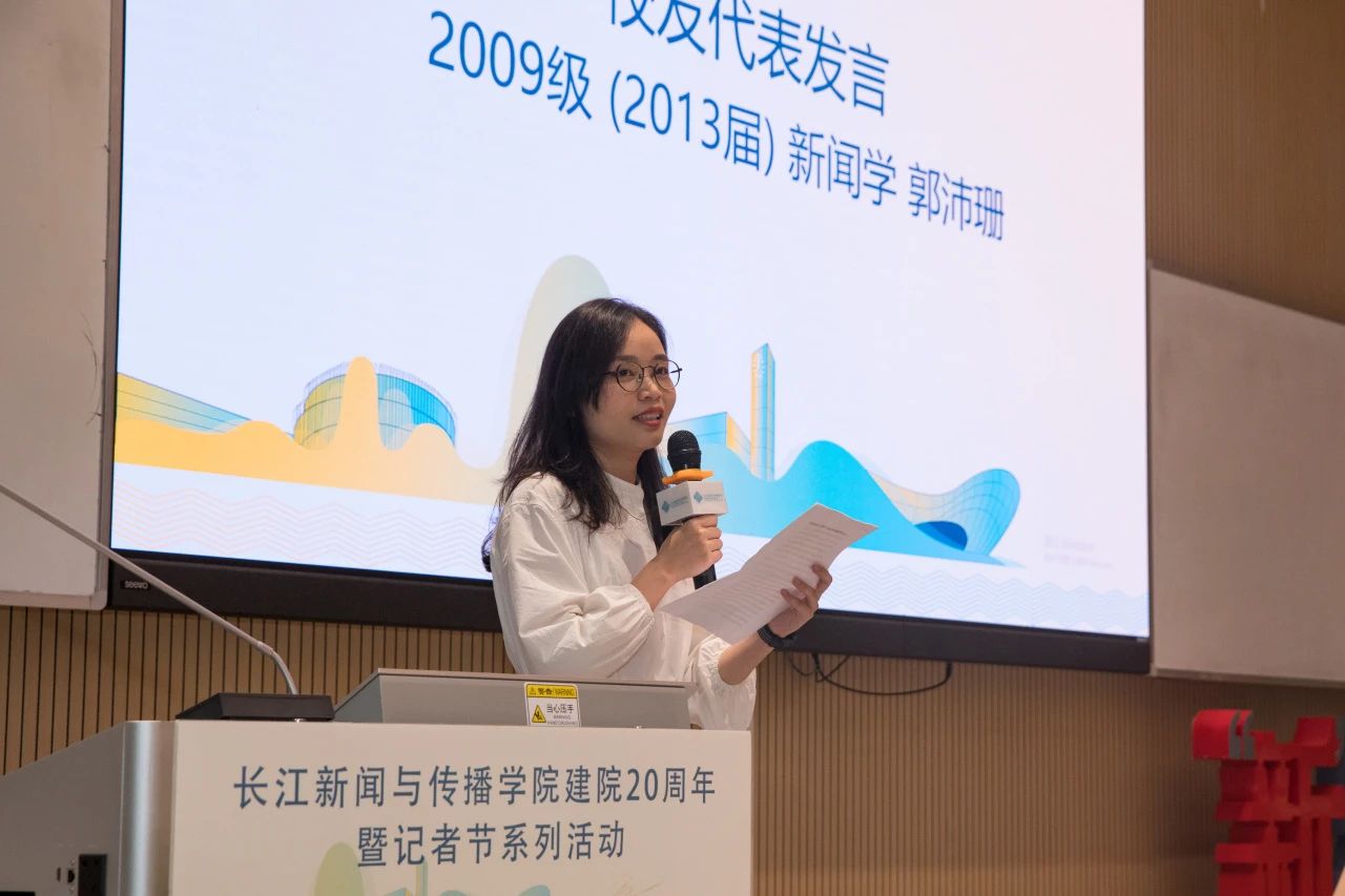 长江新闻与传播学院党委书记余珊燕为活动致辞,她“如数家珍”般地介绍到场校友,并期待同学们能够在分享会上积极交流、汲取经验、有所收获。