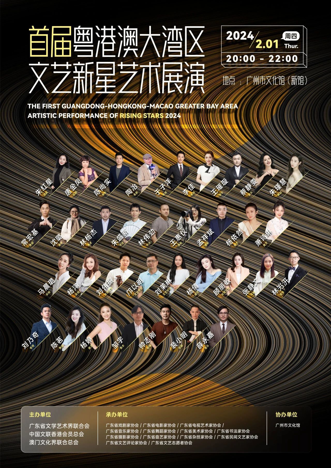 首届“粤港澳大湾区文艺新星”评选共有34名青年文艺工作者入选,他们是各艺术领域的优秀代表,是广东文艺事业的未来,是推进大湾区文艺事业高质量发展积极贡献的青年力量。“粤港澳大湾区文艺新星”艺术展演,前身为创设于1996年的广东省“新世纪之星”艺术展演,于2023年正式更名,其由广东省文联、香港文联与澳门文化界联合总会共同主办,将港澳地区纳入艺术展演范围,通过搭建艺术展演平台,集中推介湾区各艺术领域的优秀青年文艺工作者。
