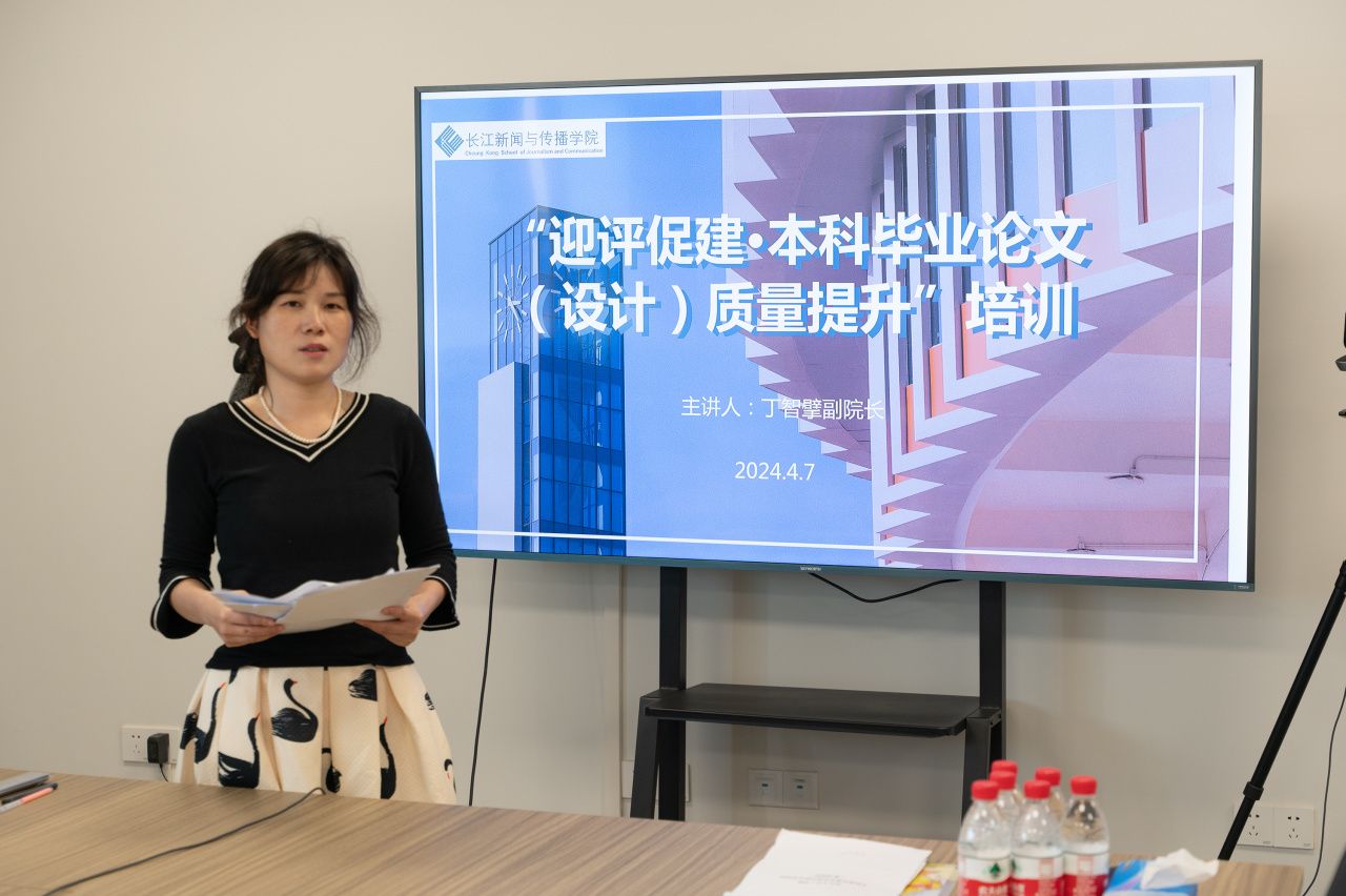 培训会由丁智擘主讲,就提升本科毕业论文质量的重要性、本科毕业论文的规范性和创新性、本科毕业设计评价标准的差异性以及本科毕业论文的答辩和审查要求等四点内容进行培训讲解。