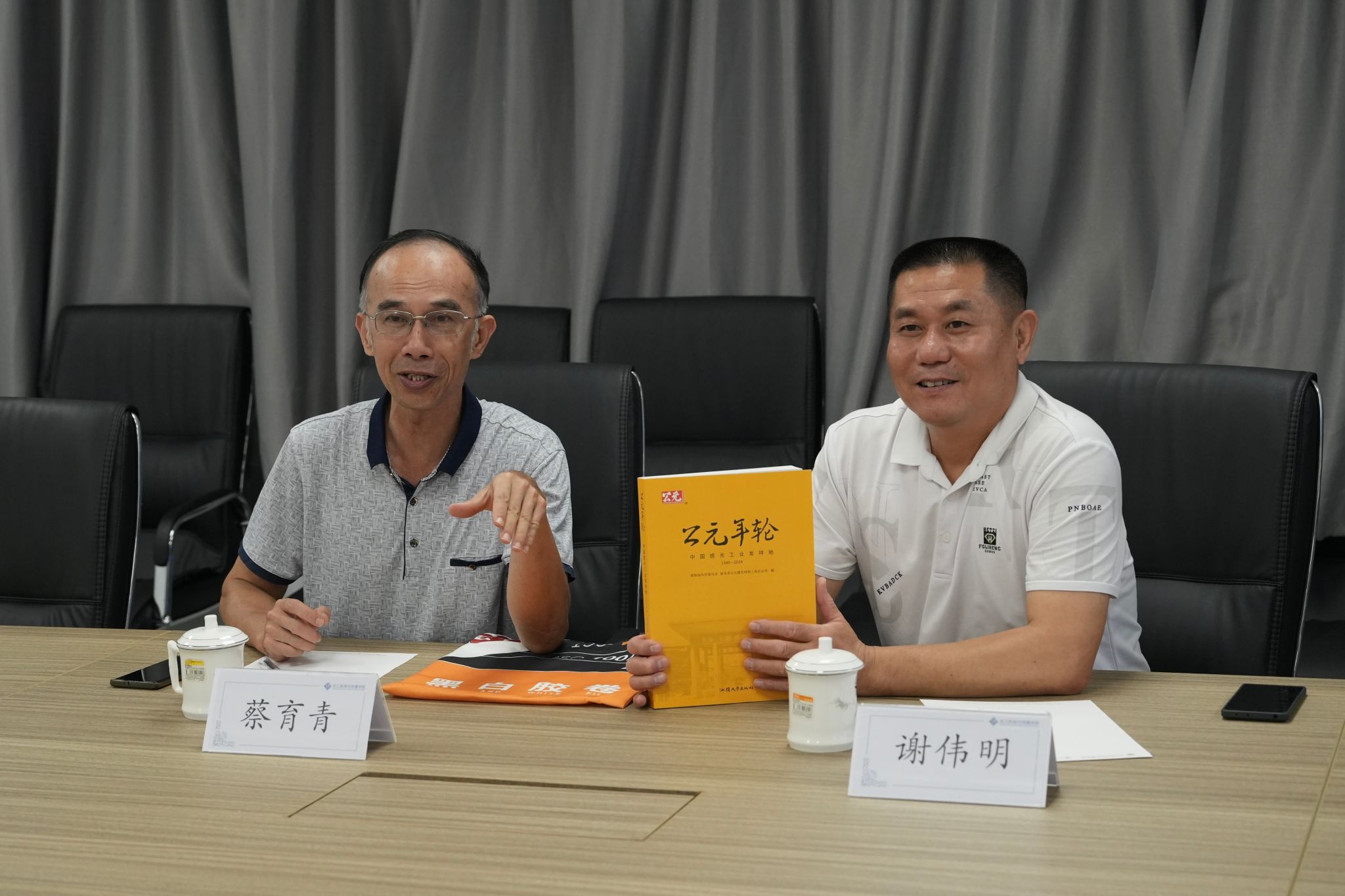6月14日上午,《公元年轮——中国感光工业发祥地1949-2024》(以下简称《公元年轮》)赠书仪式在汕头大学东海岸校区C628举行。汕头市公元感光材料工业总公司党支部书记谢伟明、工程师蔡育青及汕头大学长江新闻与传播学院党委书记余珊燕、负责人毛浩、副院长丁智擘等出席仪式。