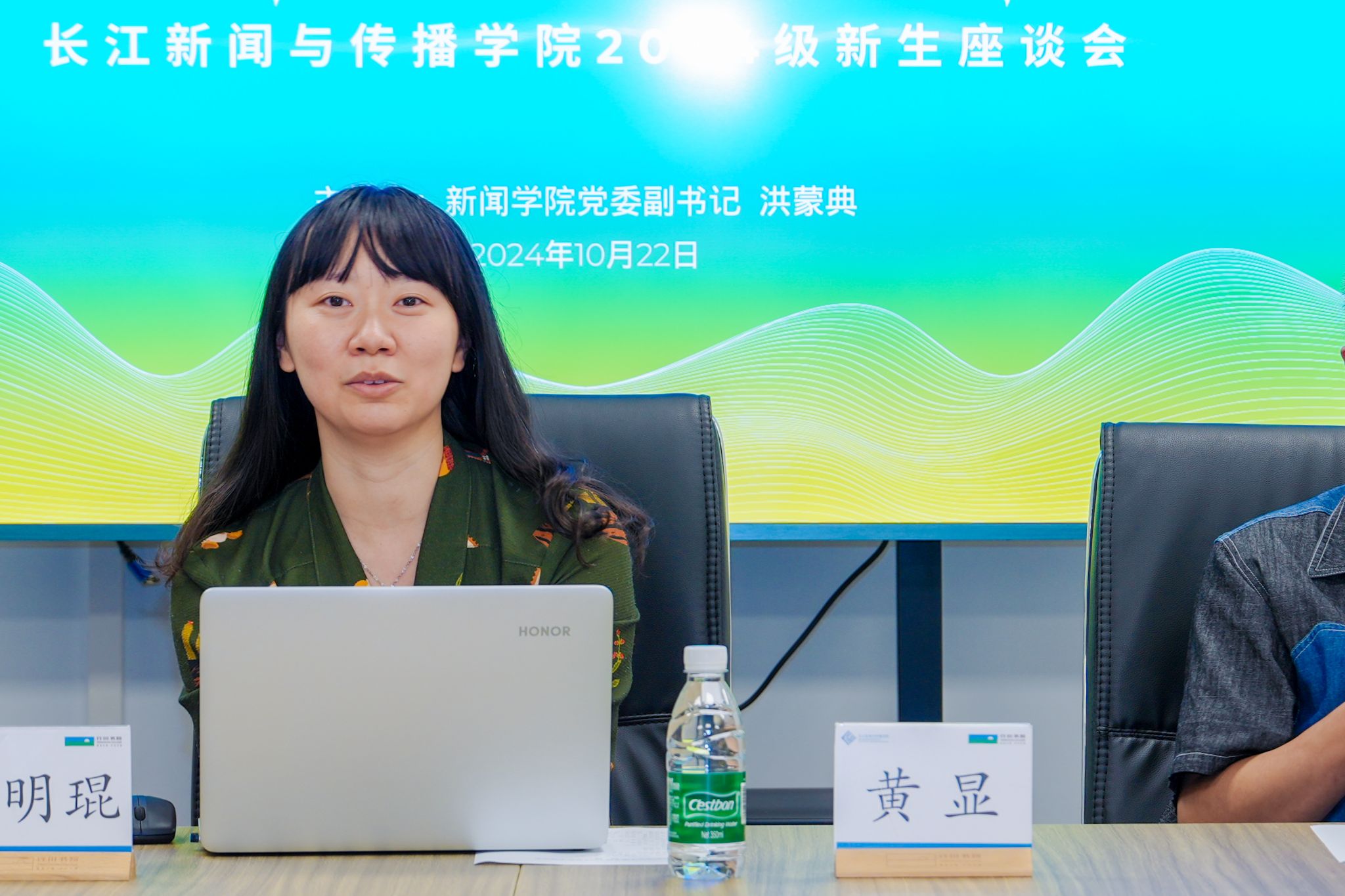 10月22日下午,长江新闻与传播学院2024级新生座谈会在东海岸校区行政楼C628室举行。学院党委书记余珊燕、负责人毛浩教授、党委副书记洪蒙典、副院长丁智擘、各专业教师代表、辅导员与本科新生代表亲切交流,共谈青春理想、共话使命担当。活动由洪蒙典副书记主持。