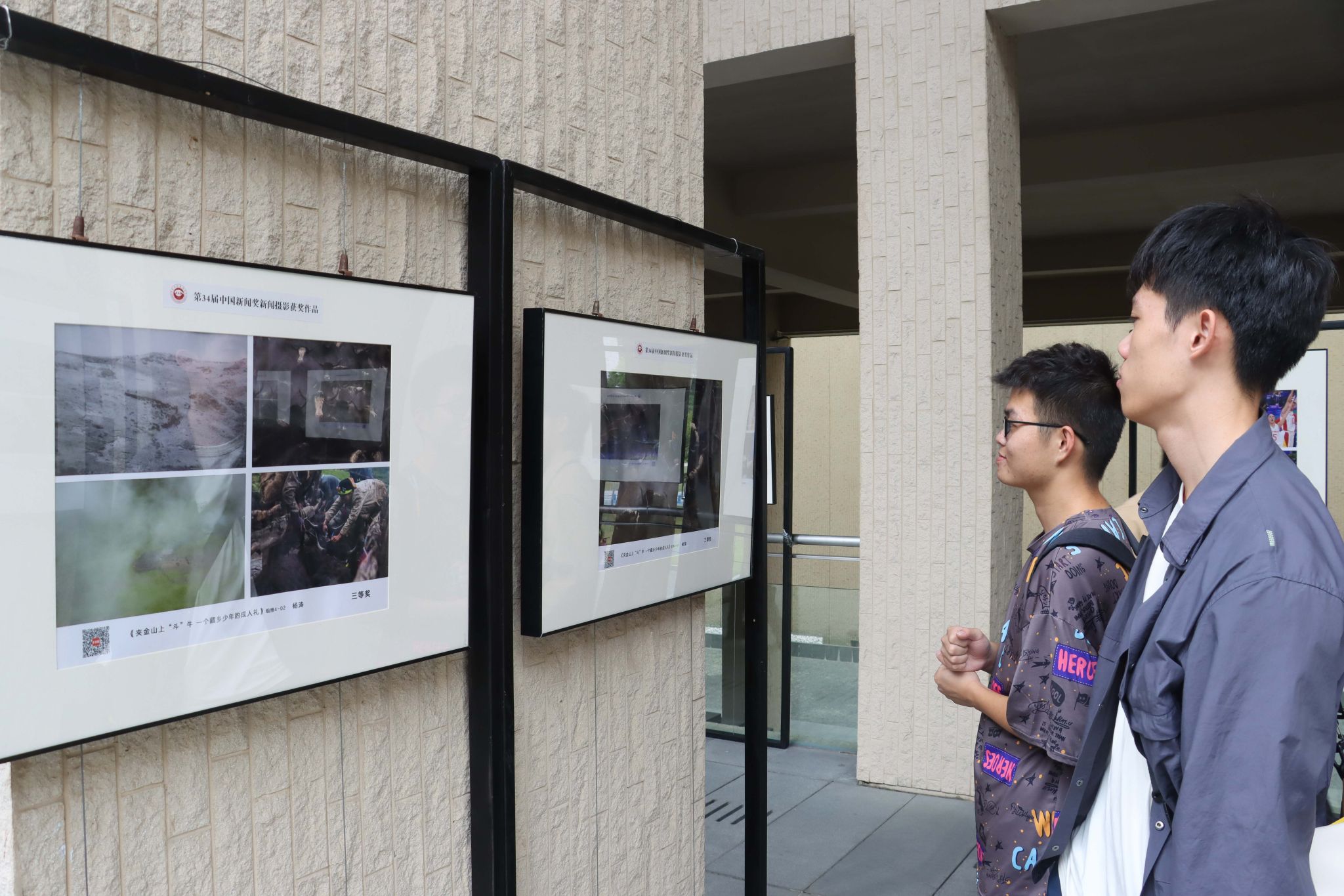 “我们今年继续开展‘中国新闻奖进校园’活动,第一时间请来获奖作品作者讲述创作体会,第一时间举办获奖摄影作品展,是在给同学们开展一次新闻实务的教学,更是为同学们提供一次宝贵的思想政治教育。”毛浩主持活动并介绍道。