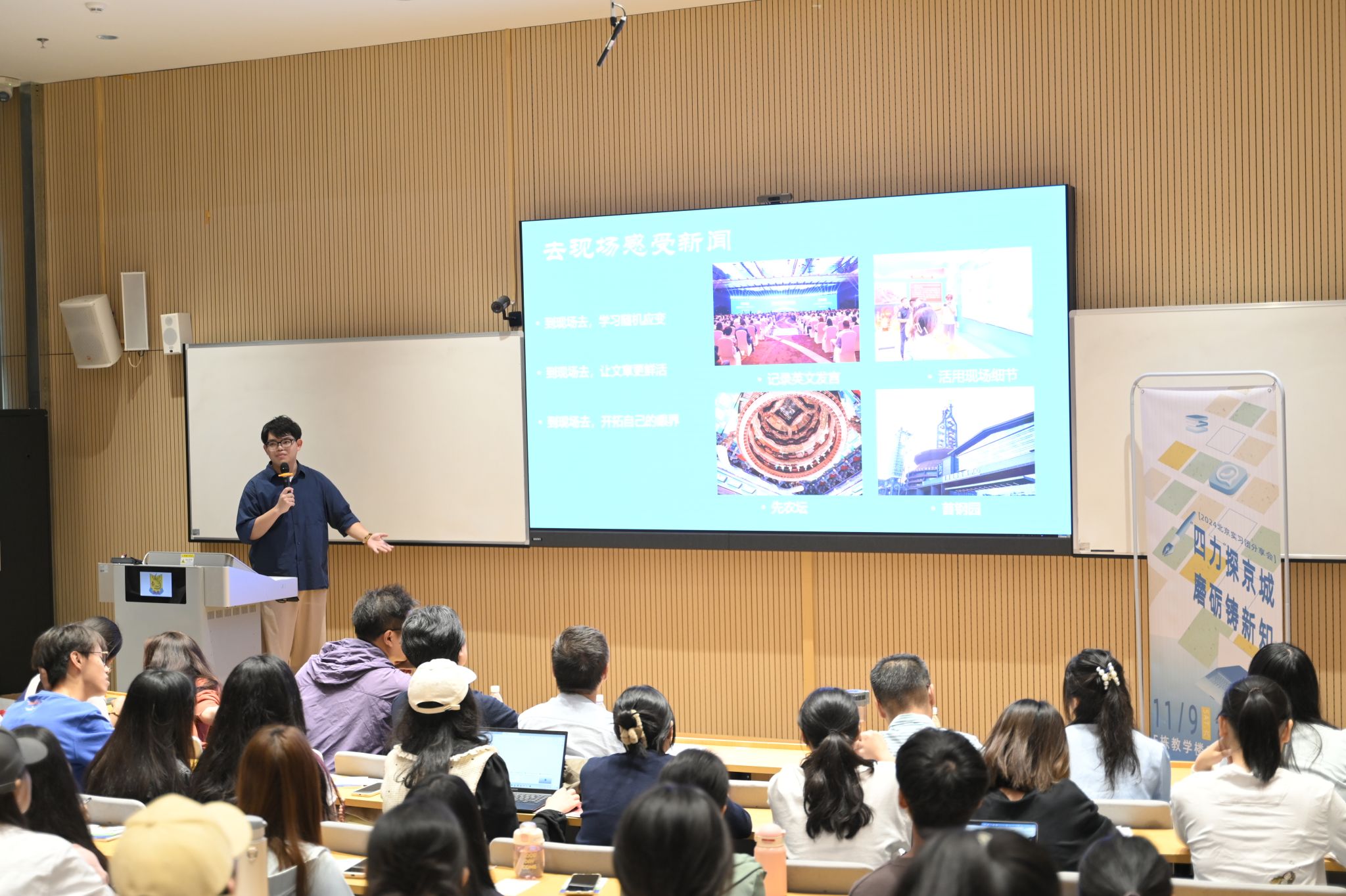 2024年11月9日,汕头大学长江新闻与传播学院2024年北京实习团在汕头大学东海岸校区举办“‘四力’探京城,磨砺铸新知”主题分享会。新闻学院党委书记余珊燕、负责人毛浩教授、副院长丁智擘,北京实习团指导老师张征教授、蔡秋彦副教授及学院各专业的老师出席本次活动。