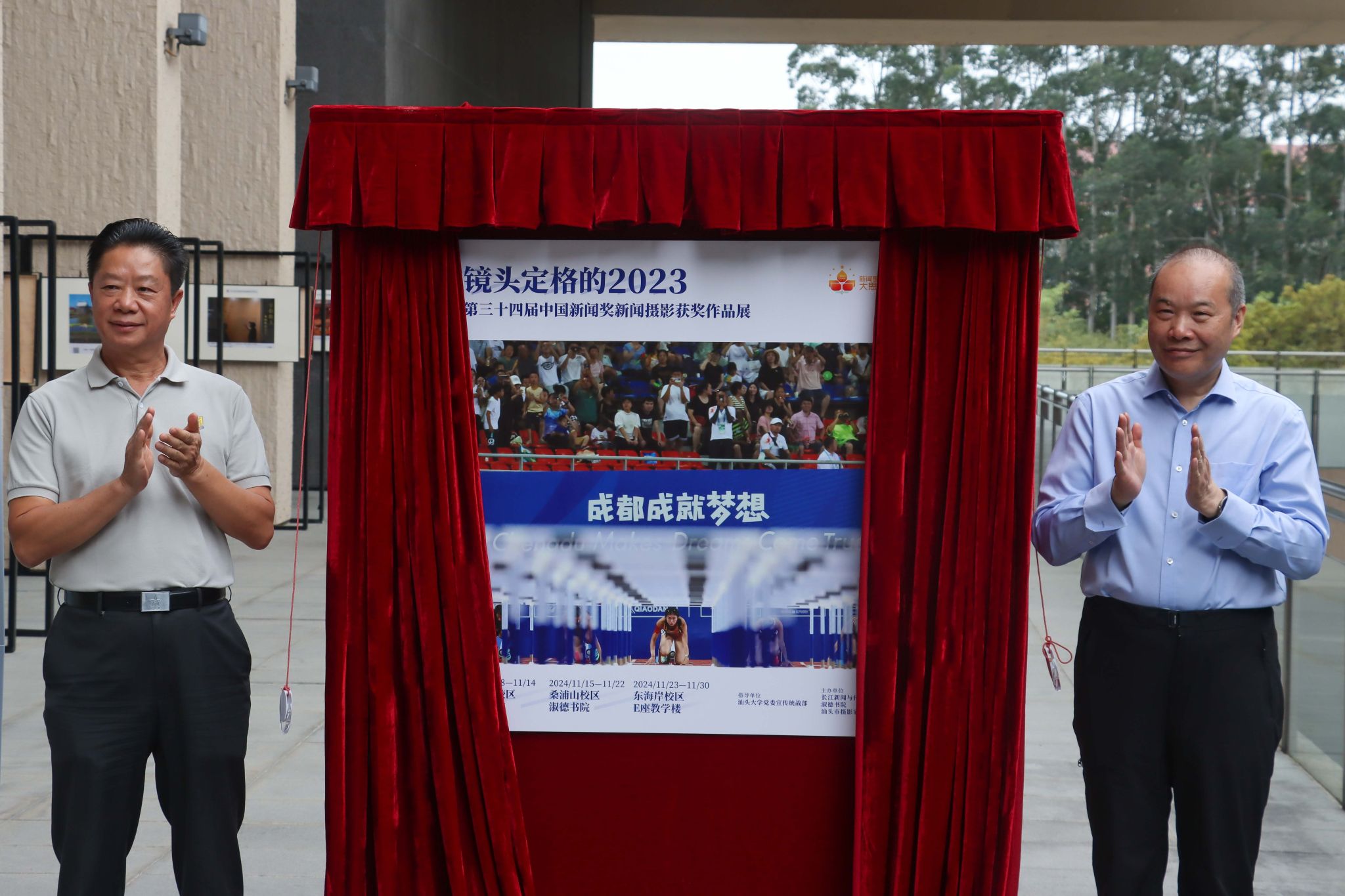 11月8日记者节当天,“镜头定格的2023——第34届中国新闻奖新闻摄影获奖作品展”在汕头大学图书馆揭幕。影展共展出新闻摄影类14项共40幅新闻摄影作品,将持续在汕大校园的图书馆、淑德书院、教学楼等地流动展出23天。“我们今年继续开展‘中国新闻奖进校园’活动,先筹办了一场第34届中国新闻奖获奖摄影作品最早进校园的影展,又在第一时间邀请到四位获奖记者来校讲述创作体会,”汕头大学党委副书记周镇松介绍道,“这意在给同学们开展一次新闻实务的教学,更是为同学们提供一次宝贵的思想政治教育。”
