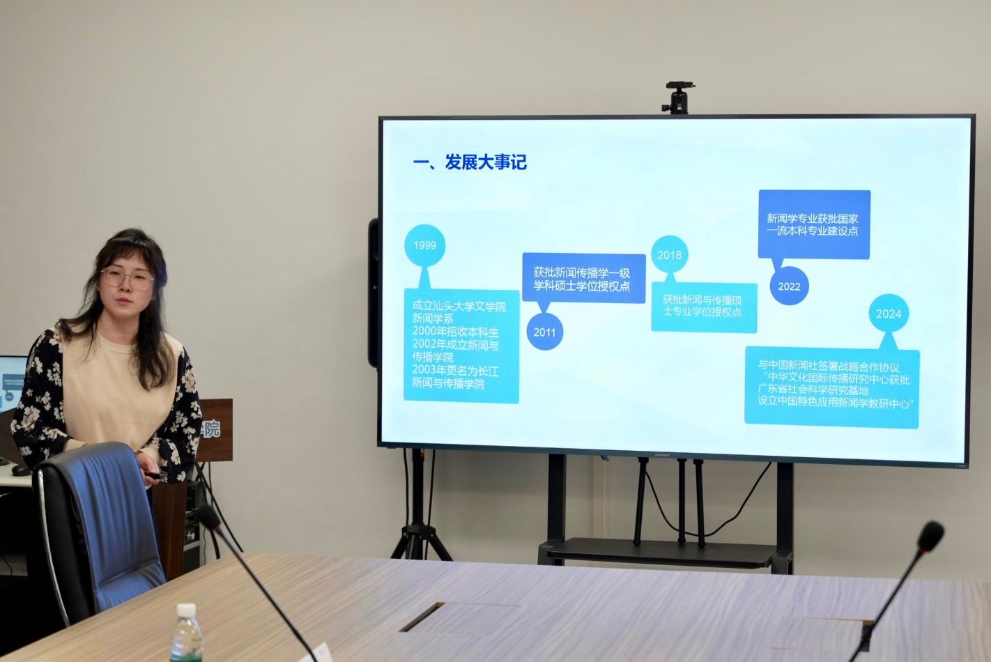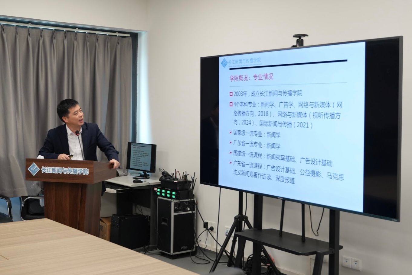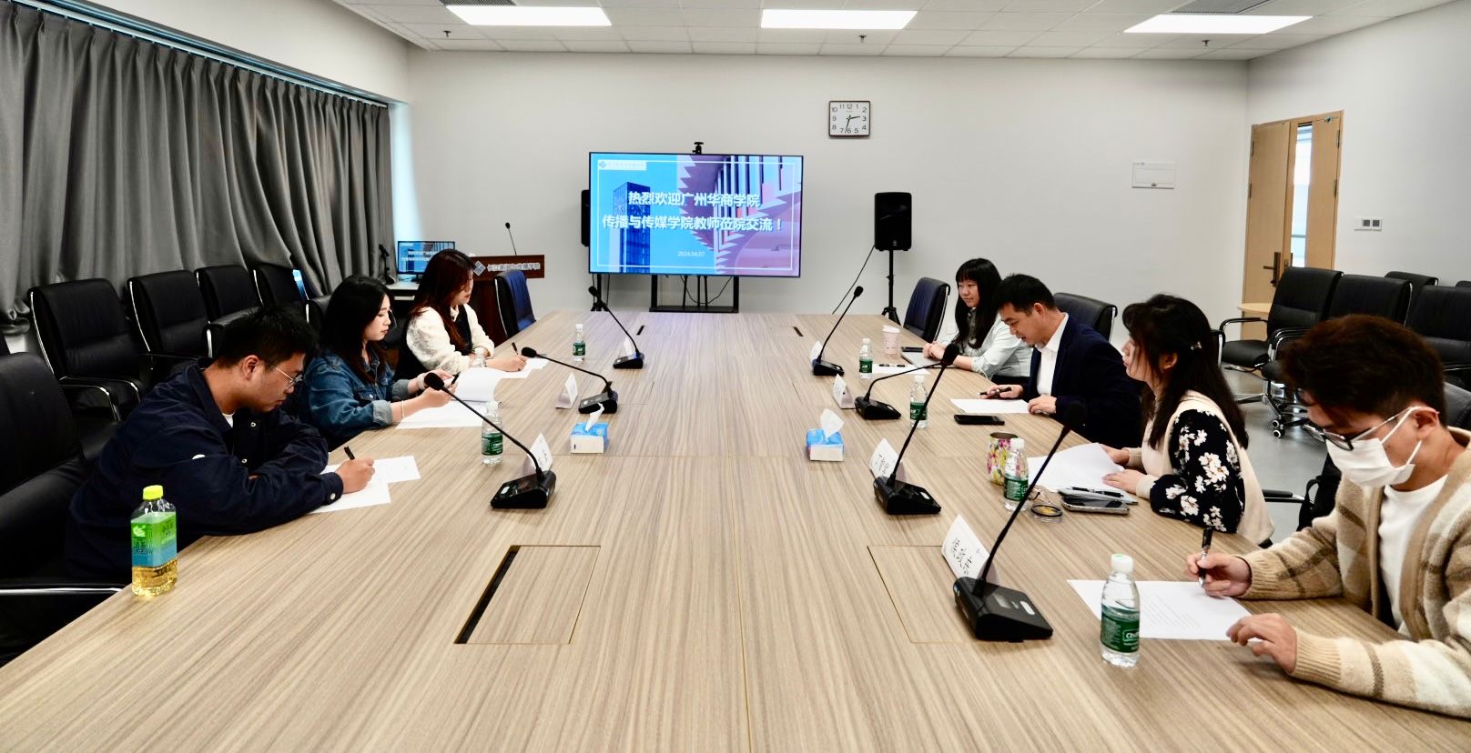 4月7日,广州华商学院(以下简称华商学院)传播与传媒学院新闻系副主任李润婷及青年教师李珂、陈圣等一行人到访汕头大学长江新闻与传播学院,双方举行座谈会并参观学院教学实验室。我院副院长毛良斌教授、副院长丁智擘副教授、新闻学专业协调人黄显博士和实验室主任侯政东博士等出席座谈会。