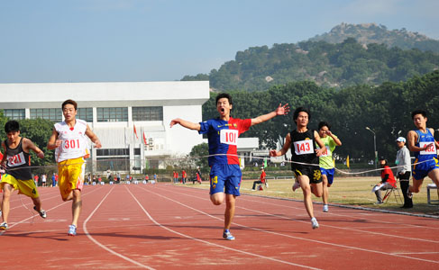 新闻健儿在本次校运会的短跑项目中表现得尤为抢眼。09级滕宇航和10级新生李晨包揽男女子100米决赛金牌。滕宇航延续初赛的强劲风头,以微弱的优势力压商学院体育特长生,获得了项目第一。他表示,本次运动会因多了校体育特长生的参与,争夺第一比去年要困难得多,所以今年获得金牌更令人高兴;而李晨则在女子100米决赛中以压倒性的优势夺冠。 “我的夺冠很大程度上得益于天生的优势,”李晨说,她在以前学校的短跑项目上获得过不少冠军。