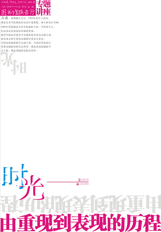 嘉宾简介:籍贯浙江义乌,1955年出生于武汉,湖北美术学院视觉传达设计系教授、硕士研究生导师。2006年筹建湖北美术学院摄影专业,学科带头人,作品多次荣获国内外摄影奖项。现任中国高等教育学会摄影教育委员会副主席、教育部文科计算机基础指导委员会委员、全国高校摄影联合会副主席、全国高等院校计算机基础教育研究会理事、湖北省高校摄影学会主席、湖北省摄影家协会理事。