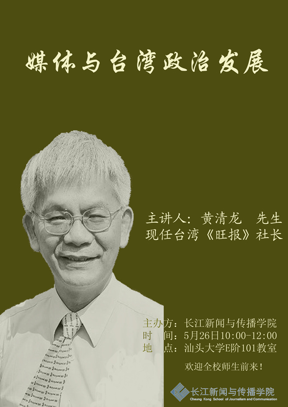 黄清龙先生是台湾的资深媒体人,历任联合报记者、自立晚报采访主任、中时晚报总主笔、中国时报总编辑、副社长等职务,有长达25年的新闻工作资历。